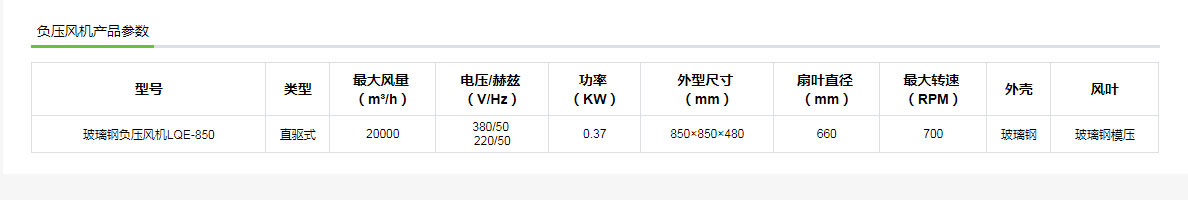 玻璃鋼負(fù)壓風(fēng)機(jī)LQE-850