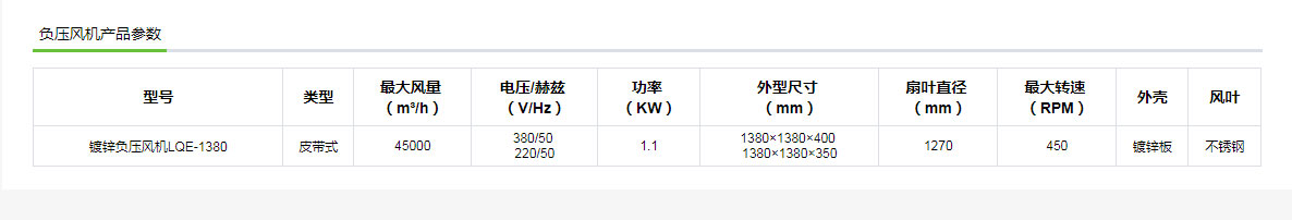 鍍鋅負壓風機LQE-1380